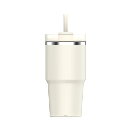 Modern, double-walled, vacuum-insulated mug made of high-quality, 90% recycled 18/8 stainless steel, reusable straw and screw-on FlowState™ lid with screw cap; keeps drinks cold for up to 8 hours and hot for up to 4 hours