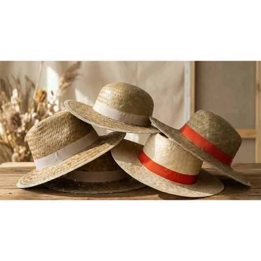 Viva España – perfect for warm summer days, travel or festivals, trendy, lightweight and shape stable hat sustainably made in Europe from seagrass and palm straw with sewn on hatband made from recycled polyester, available with narrow or wide brim and in many different shapes