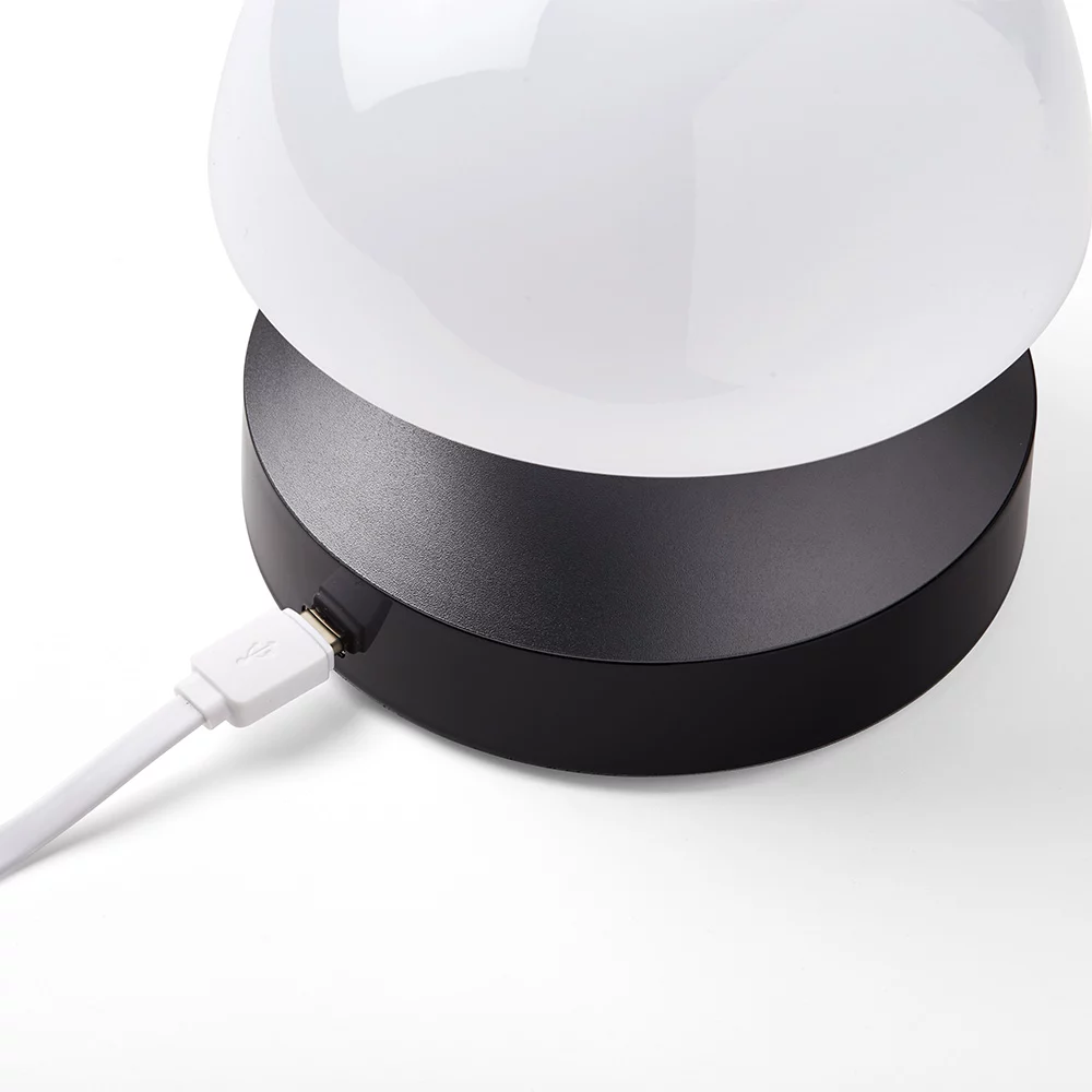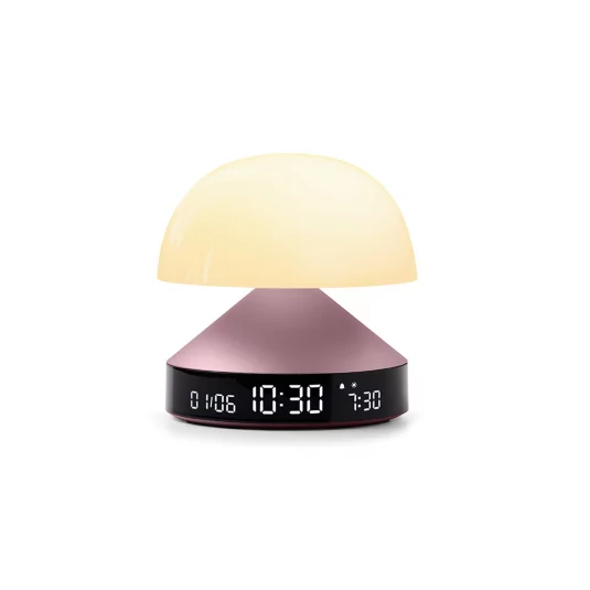 Stylish designer alarm clock made of aluminium, with pleasant sunrise/sunset simulation, 9 different, dimmable LED colour settings and soft, natural wake-up melodies, with LCD display, touch/snooze function and an operating time of 4 months without recharging, supplied with USB-C cable