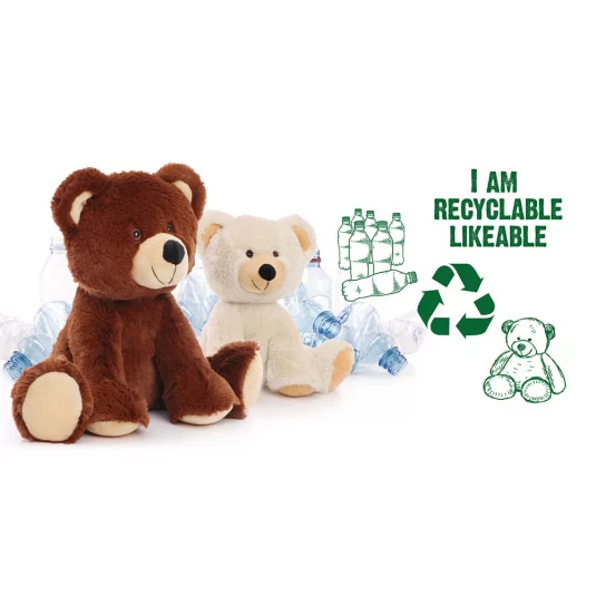 Sustainable Teddy made from 4 recycled PET-bottles, without any plastic, recyclable, washable (30º)