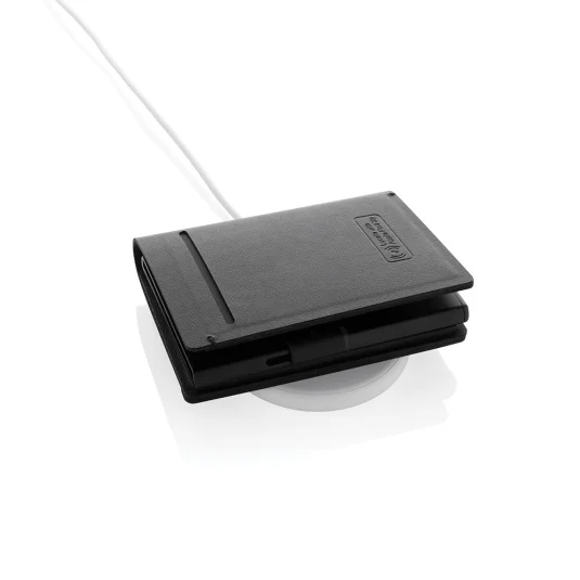Card holder for three bank cards in the card case as well as additional compartments for more cards, with integrated Trackmate for worldwide tracking in case of loss, made of recycled polyester; compatible with the Apple “Find My” app and wirelessly rechargeable within 1 hour for a usage time of up to 4 months