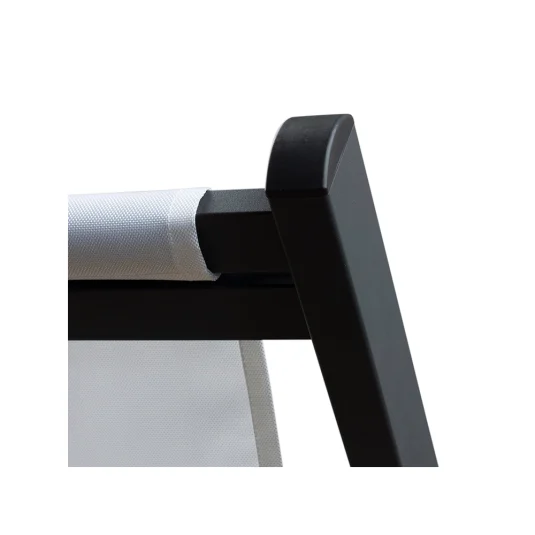 Lightweight, four-stage adjustable outdoor lounger with aluminium frame and replaceable polyester cover