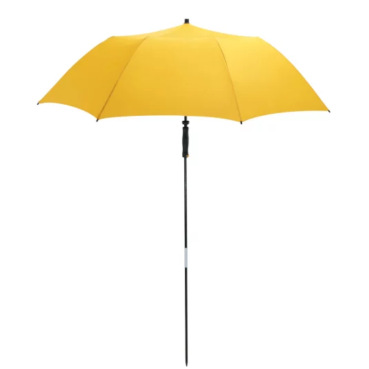 The practical camping umbrella with fiberglass support, stick and spokes, nylon cover with UV protection and a plastic handle
