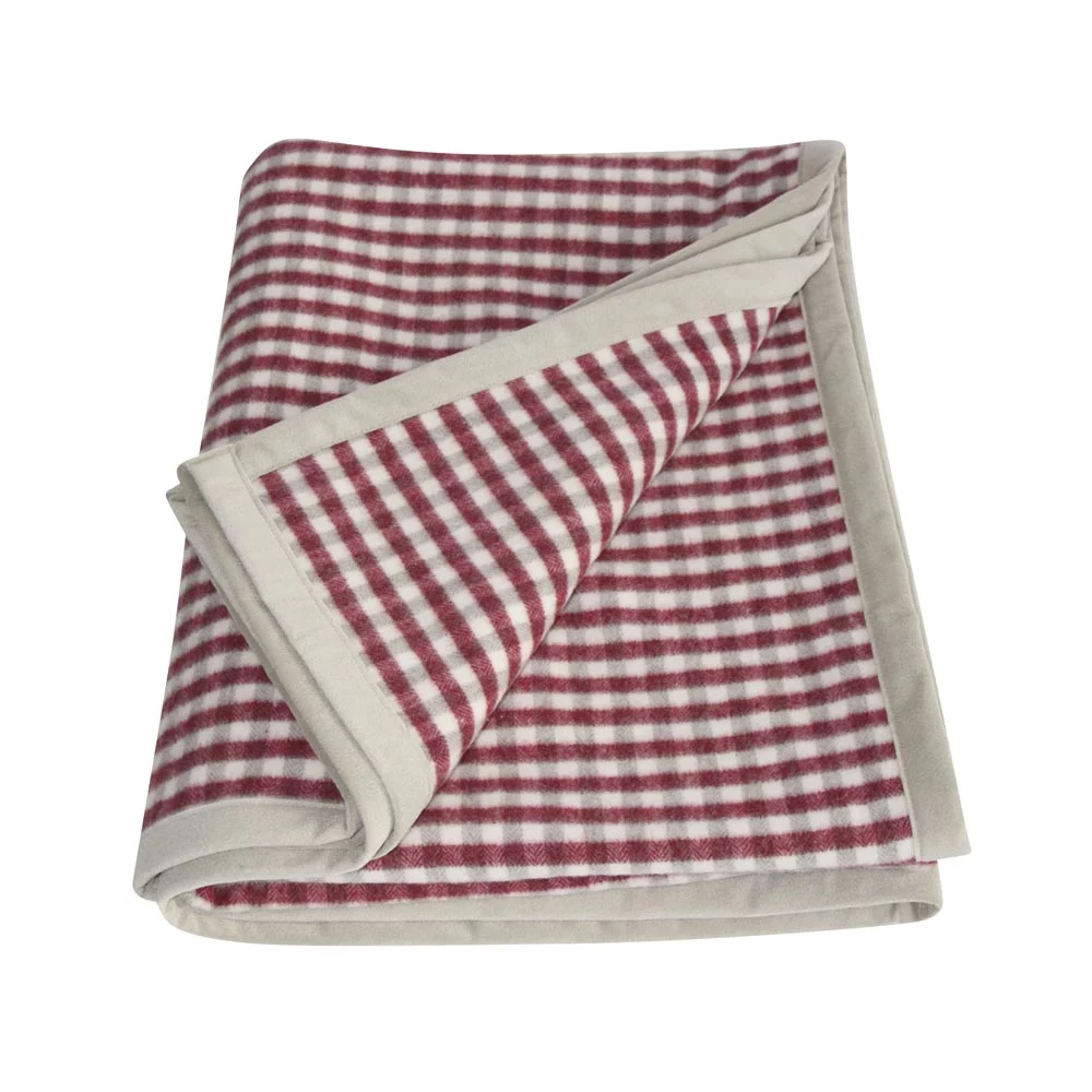 Attractive Vichy check throw with binding in Alpine chic, washable at 30° C, quality: 80% lambswool /20% polyamide