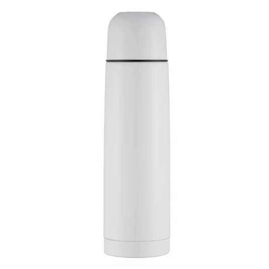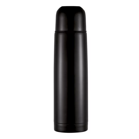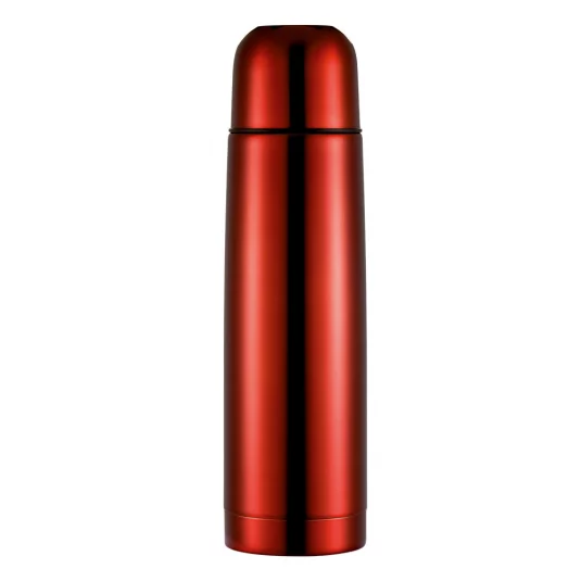 Vacuum-insulated stainless steel thermo flask, with push-open-and-close mechanism