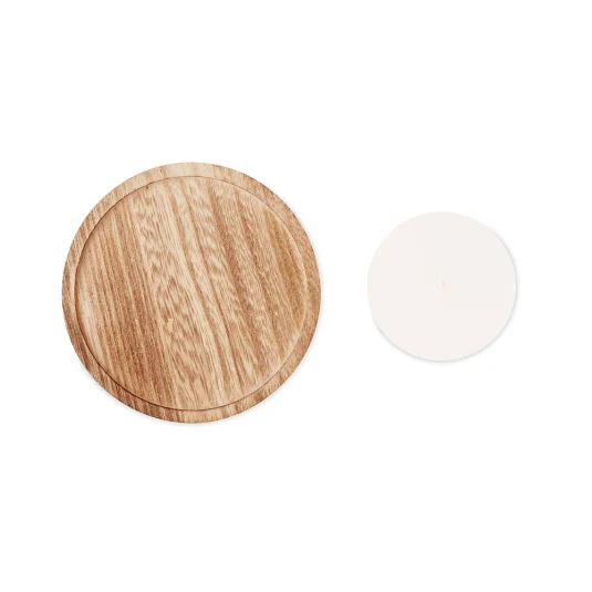 Ideal for relaxing evenings elegant wooden coaster with a decorative scented candle with a warm vanilla aroma burning time approx 12 hours