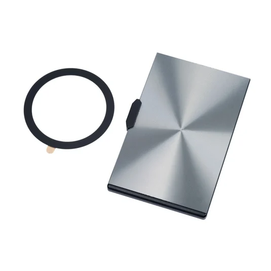 Elegant, magnetic case made of aluminium, with sliding mechanism for up to 3 credit/bank cards, protects against unauthorised reading of data on RFID cards