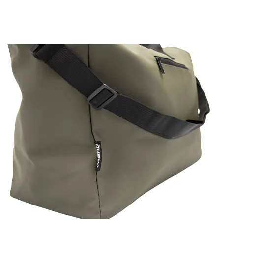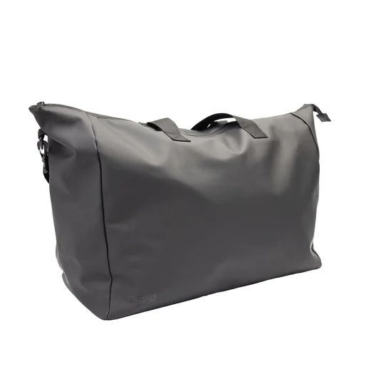 Robust sports and travel bag made of soft, water-repellent PU leather with inner lining made of recycled PET bottles and detachable shoulder strap, capacity 45 litres