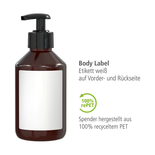 Une main lave l’autre, savon liquide au parfum agréable, doux pour la peau, vegan et sans silicones, dans une bouteille durable en PET recyclé, contenu 250 ml