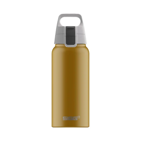 Swiss Made bouteille légère et élégante fabriquée en aluminium de haute qualité durable et 100 pour cent recyclé avec bouchon ONE étanche utilisation à une main adaptée aussi aux boissons gazeuses facile à transporter et à nettoyer capacité 0,6 L