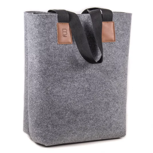 Cabas moderne en feutre avec un grand compartiment principal et de longues anses, disponible en trois différentes qualités de feutre (feutre de laine, feutre recyclé, feutre de polyester)