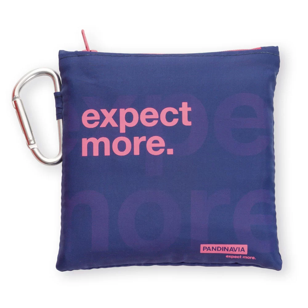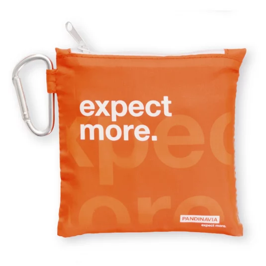 Petit shopping bag tendance et pratique en polyester, avec pochette de rangement et mousqueton.