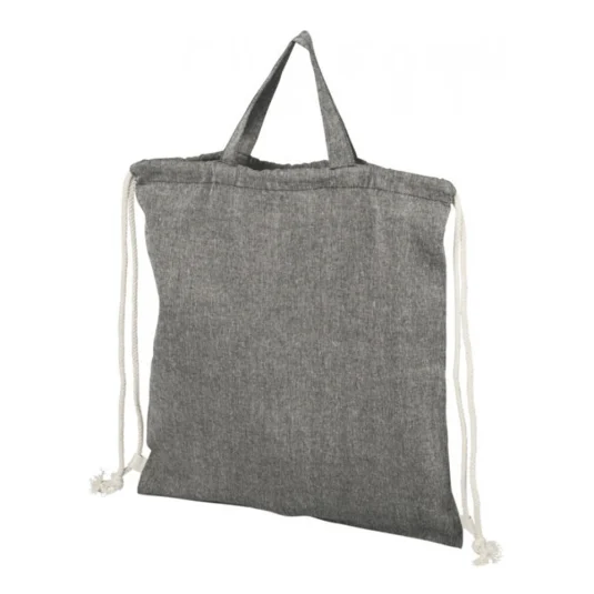 Sac classique durable fabriqué à partir de déchets de consommation dans les usines textiles en coton recyclé 150 g m2 et polyester recyclé avec deux poignées courtes et un cordon de serrage en coton pratique