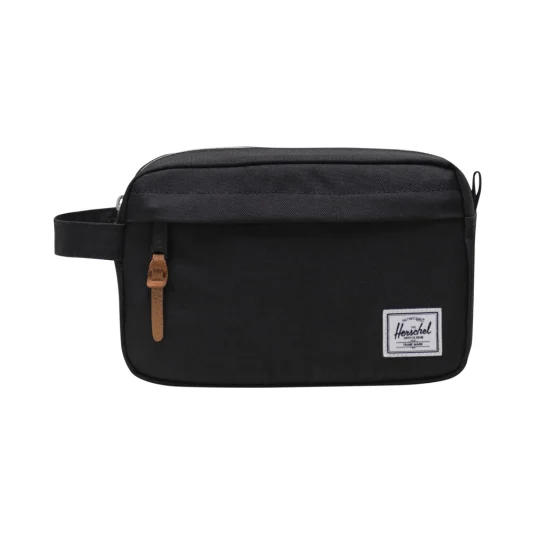 Trousse Herschel Chapter fabriquée à partir de 100 pour cent rPET avec fermeture éclair étanche poignée latérale pratique poche avant à fermeture éclair et poche en filet à l intérieur pour un rangement supplémentaire