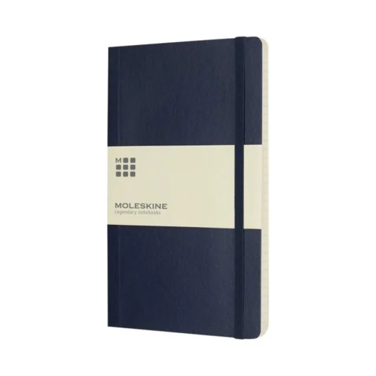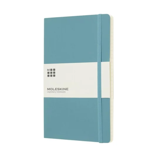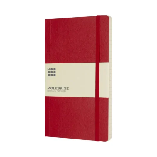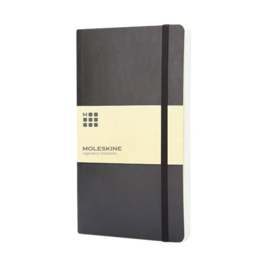 Cahier avec couverture souple et coins arrondis 192 pages couleur ivoire avec ruban marque page fermeture élastique et une poche intérieure pour notes volantes à l arrière disponible en version lignée format non standard DIN environ A5