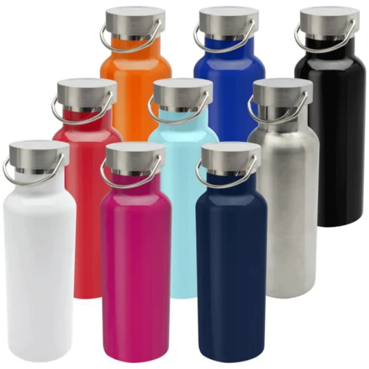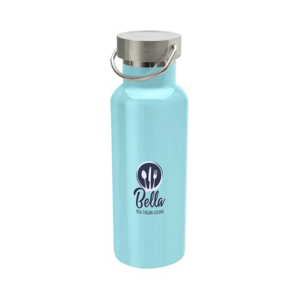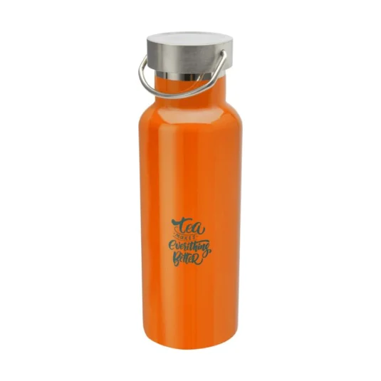 Bouteille robuste, à double paroi et isolée sous vide en acier inoxydable recyclé, avec bouchon à vis et poignée pratique, capacité 0,5 l