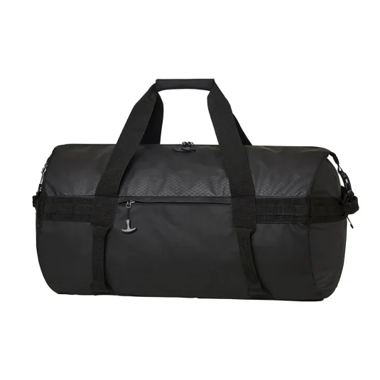 Sac de voyage sportif en PET recyclé avec fonction sac à dos ; avec compartiment principal spacieux, fermetures latérales, compartiments extérieurs supplémentaires ainsi que bretelles cachées, rembourrées et réglables en longueur.