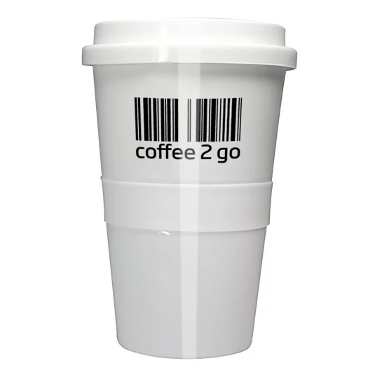 Tasse à café élégante avec couvercle plastique de qualité et bague silicone à nervures (protection thermique), contenance 3 dl
