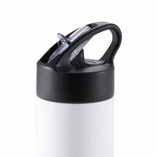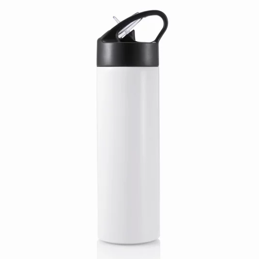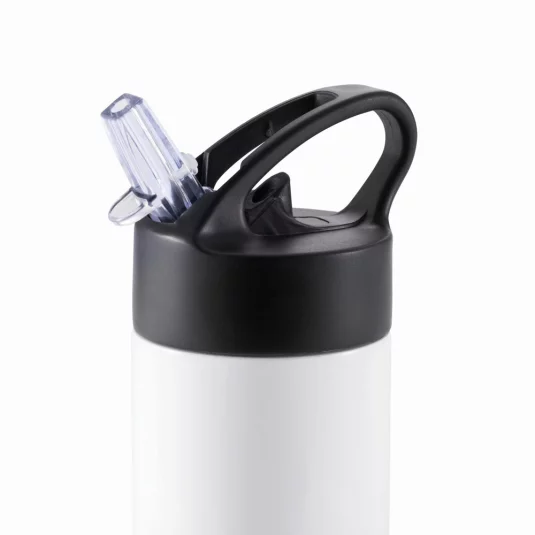 Élégante bouteille en acier inoxydable avec une paille pratique intégrée.