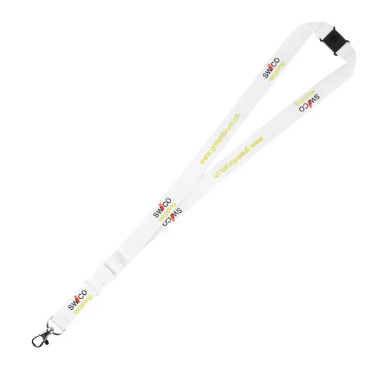 Dragonne tendance, en polyester ou en nylon, avec clip de sécurité dans le cou, avec ou sans clip détachable, largeur de la sangle au choix (de 10 à 25 mm), avec crochet à l’extrémité, à utiliser comme porte-clefs, porte badge ou pour le natel, motif et finition au choix.