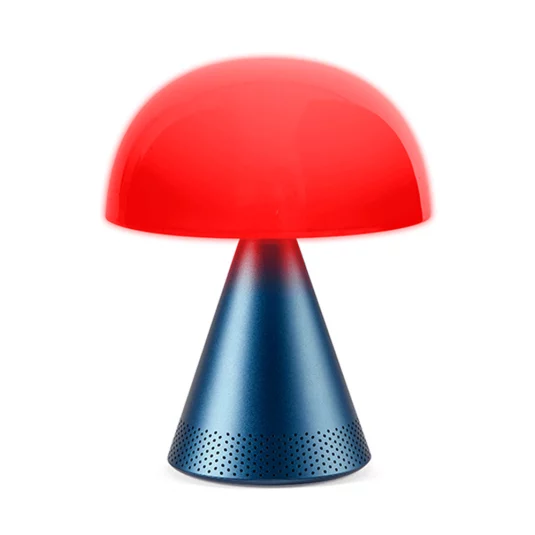 Lampe LED 2en1 noble et inductive en aluminium, avec 9 réglages de couleur LED différents et variables ainsi qu'un haut-parleur Bluetooth® 360° intégré, avec une autonomie de 24 heures et un temps de charge de 3 heures, résistante aux éclaboussures (IPX4), est livrée avec un câble USB-C.