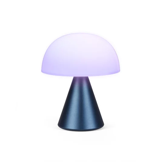 Lampe LED inductive stylée en aluminium, avec 9 réglages de couleur de LED variables, une autonomie de 24 heures ainsi qu'un temps de charge de 2 heures, résistante aux éclaboussures (IPX4), est livrée avec un câble USB-C.