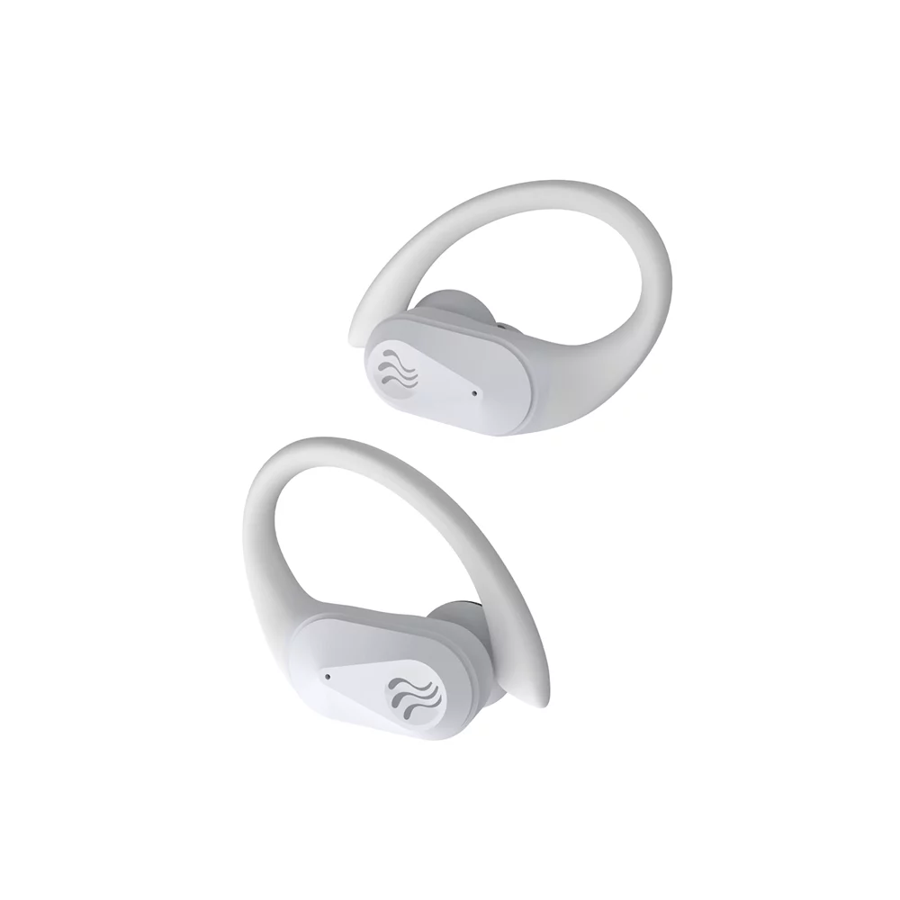 Pour la protection des océans - nous donnons de la valeur aux déchets ! Écouteurs sans fil True-Wireless durables (BT 5.0) pour les amateurs de sport ! Avec des crochets Over-Ear ergonomiques pour le confort, la stabilité et un son puissant, fabriqués à partir du #tide ocean material® développé en Suisse (100 % de plastique océanique recyclé), résistants à l'eau (IPX4), avec une autonomie allant jusqu'à 20 heures.