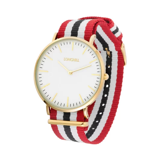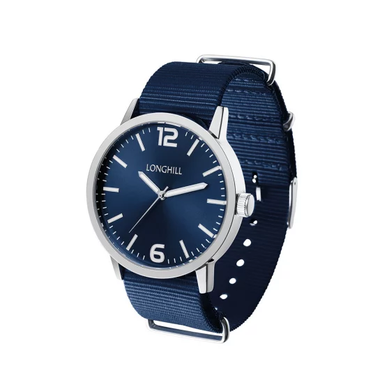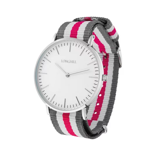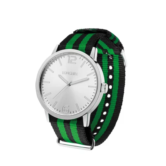 Montre tendance élégante avec grand cadran, bracelet stylé en tissu et grand cadran, livré dans un étui vitré