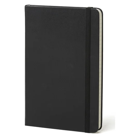 Carnet avec la bande élastique caractéristique ainsi que la poche en papier à la fin du livre 208 pages lignées format non standard DIN
