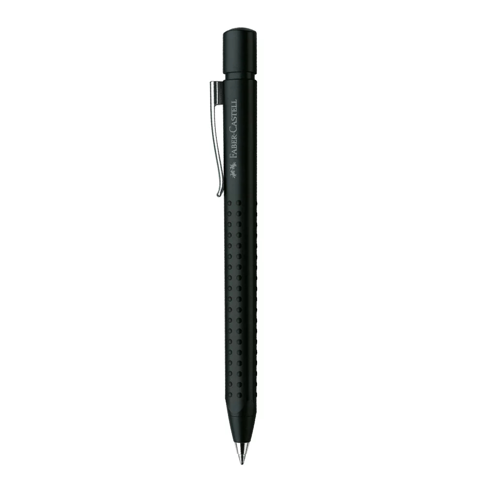 Stylo laqué de forme triangulaire ergonomique, disponible en version stylo à bille rétractable (cartouche métallique bleue de grande capacité) ou en porte-mines (mine de crayon 0,7 mm) avec gomme amovible
