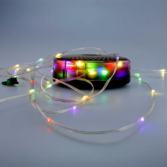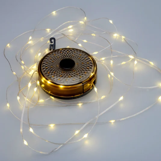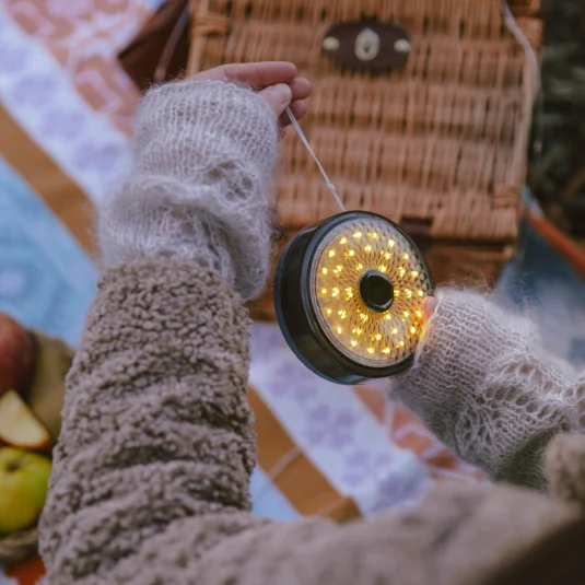 Lampe d'extérieur compacte avec guirlande lumineuse extensible de 8 m, trois modes d'éclairage avec une puissance lumineuse de 200 lumens et une banque de puissance intégrée (1 500 mAh), résistante aux éclaboussures (IPX4)