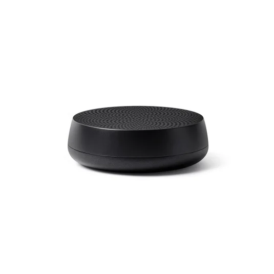 Haut-parleur Bluetooth® en aluminium/ABS résistant à l'eau (IPX4), peut être connecté à n'importe quel téléphone portable ou tablette, avec technologie TWS, fonction mains libres et selfie, autonomie jusqu'à 5 heures et temps de charge de 2 heures, peut être rechargé par induction ou au moyen du câble USB-C fourni.