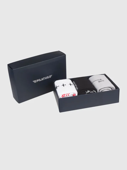 Boîte en carton personnalisée de haute qualité remplie de 3 paires de Every Day Socks au design différent.