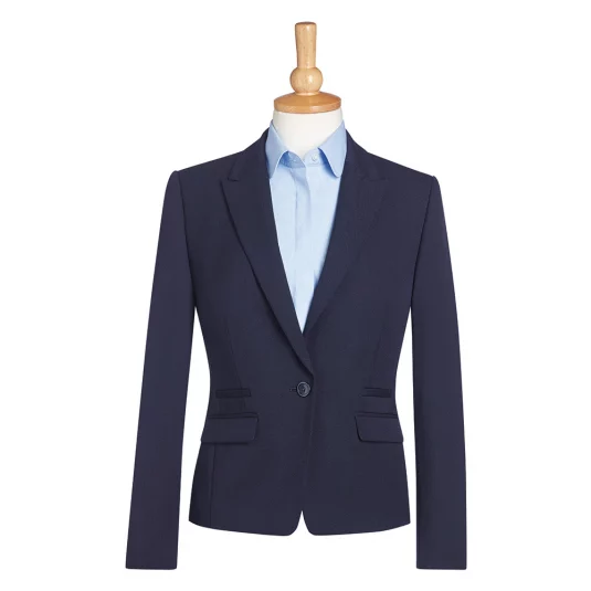 Blazer court à coupe étroite avec 1 bouton centré à l’avant, deux poches passepoilées, deux poches, une poche intérieure, dos avec coutures à la mode, lavable en machine et infroissable.