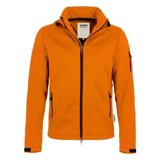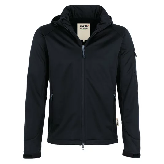 Veste softshell chaude, respirante, résistante, imperméable et coupe-vent avec capuche amovible, ourlet réglable avec cordon de serrage et arrêts de cordon, micropolaire légère à l’intérieur, bandes velcro au bas des manches, fermeture éclair double sens de grande qualité avec patte coupe-vent intérieure et protection du menton, poche zippée sur la manche gauche et poches latérales zippées.