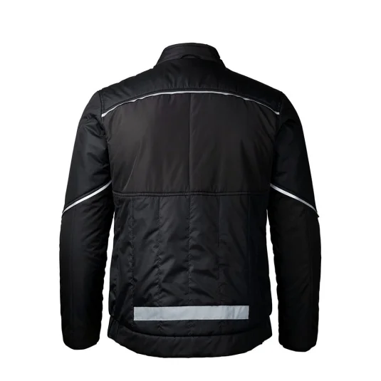 Veste matelassée en tissu ripstop résistant avec une doublure en polaire matelassée et des passepoils réfléchissants.