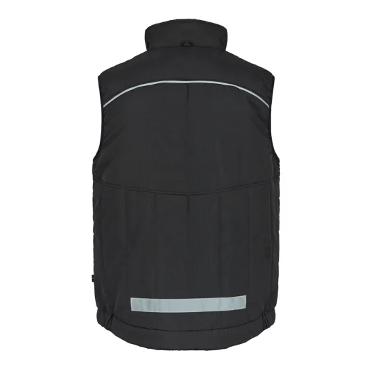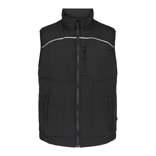 Gilet matelassé unisexe en tissu ripstop résistant et anti-salissures avec une doublure en polaire douce et matelassée et des passepoils réfléchissants.