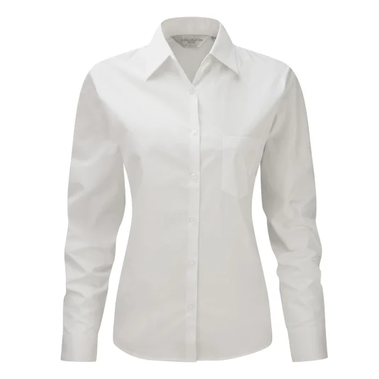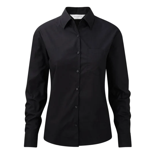 Blouse à manches longues avec col classique à un bouton, boutons ton sur ton, poche de poitrine en V à gauche, manchettes réglables par deux boutons, coupe classique, ourlet arrondi, facile d'entretien