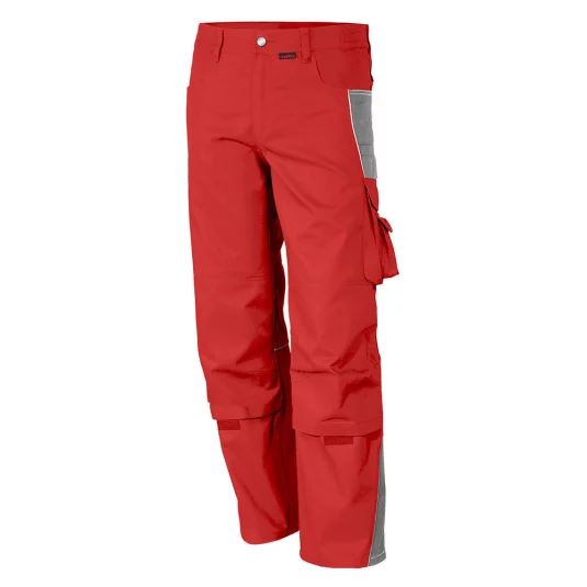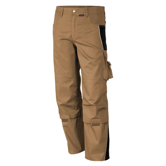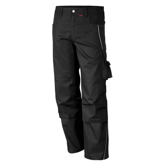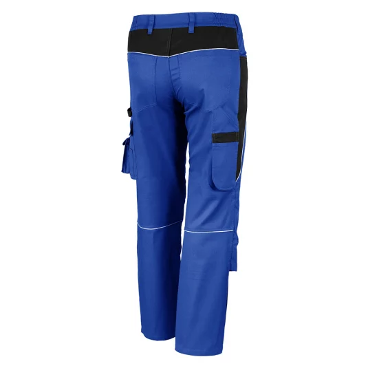 Salopette avec bandes réfléchissantes, pantalon avec fermeture éclair YKK en métal, genou préformé et poches de genoux à fermeture velcro, insert en élastique stretch sous les poches de genoux, bavette avec poches plaquées, 2 poches avant, 1 poche passepoilée intégrée, 1 poche sur la cuisse, 2 poches arrière, 1 sangle à marteau.