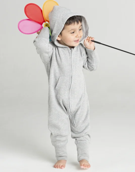 Bébé tout-en-un avec intérieur très doux et moelleux, capuche simple, sellette dans la nuque, bandeau dans le cou, zip du cou jusqu'au bas des jambes pour un habillage et une finition faciles, poche kangourou, larges bords-côtes aux poignets et aux chevilles, facile à réétiqueter.